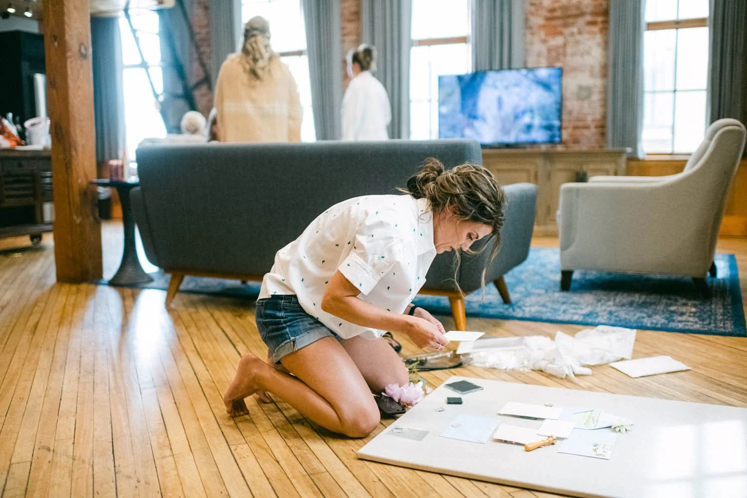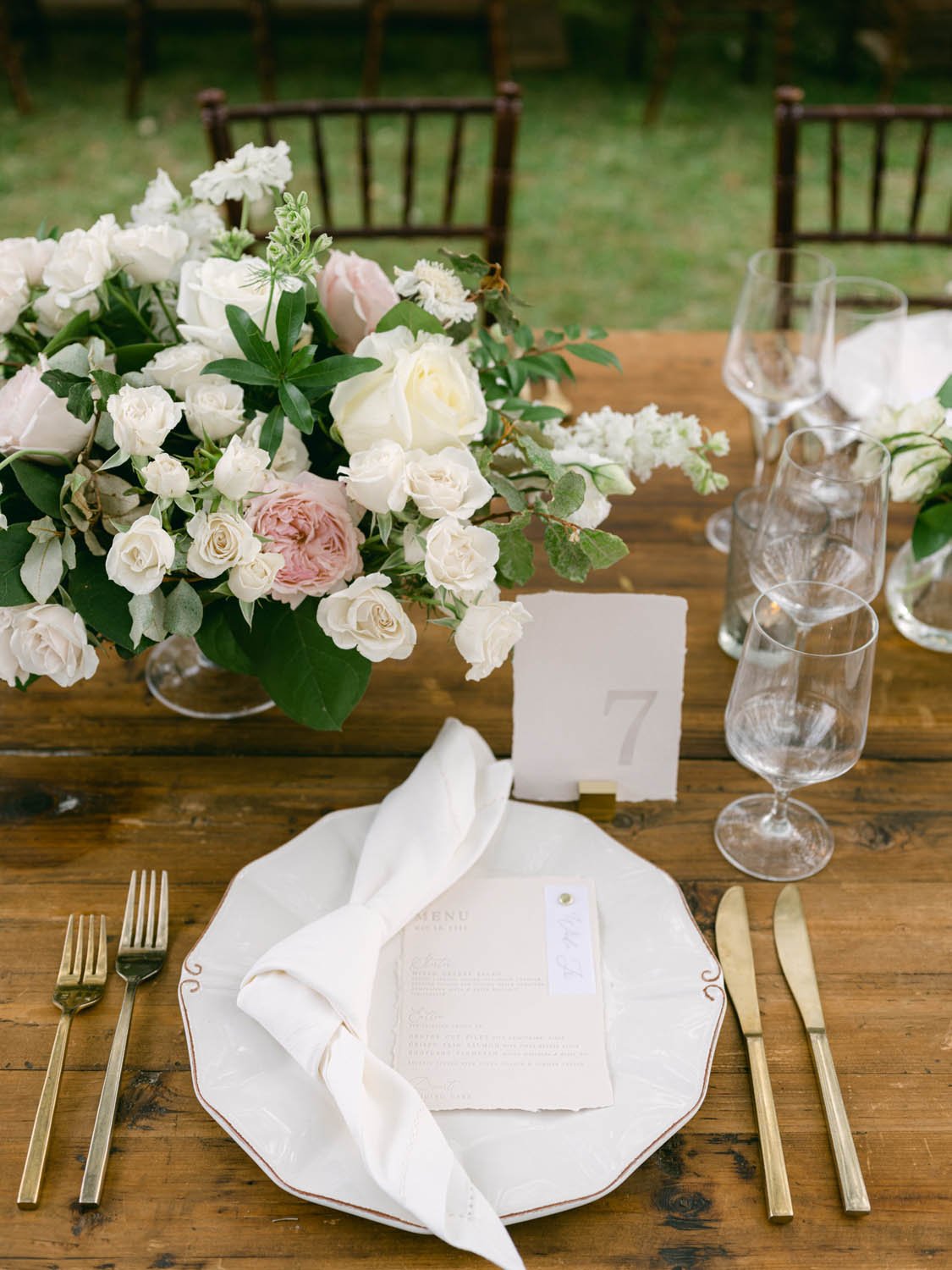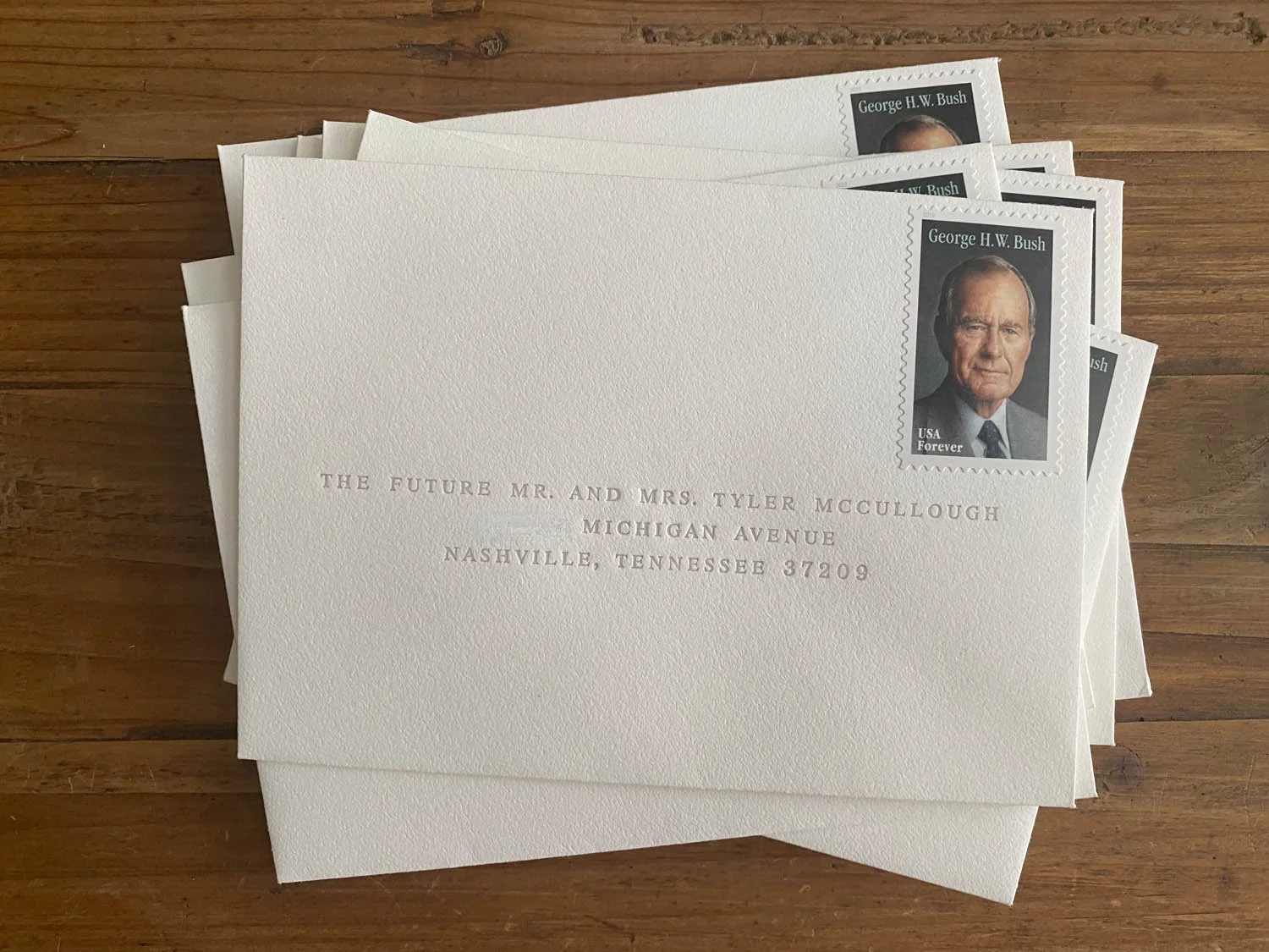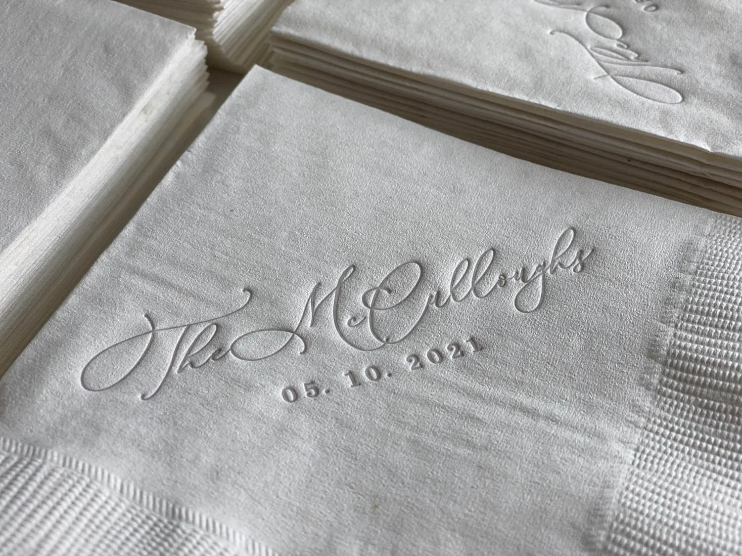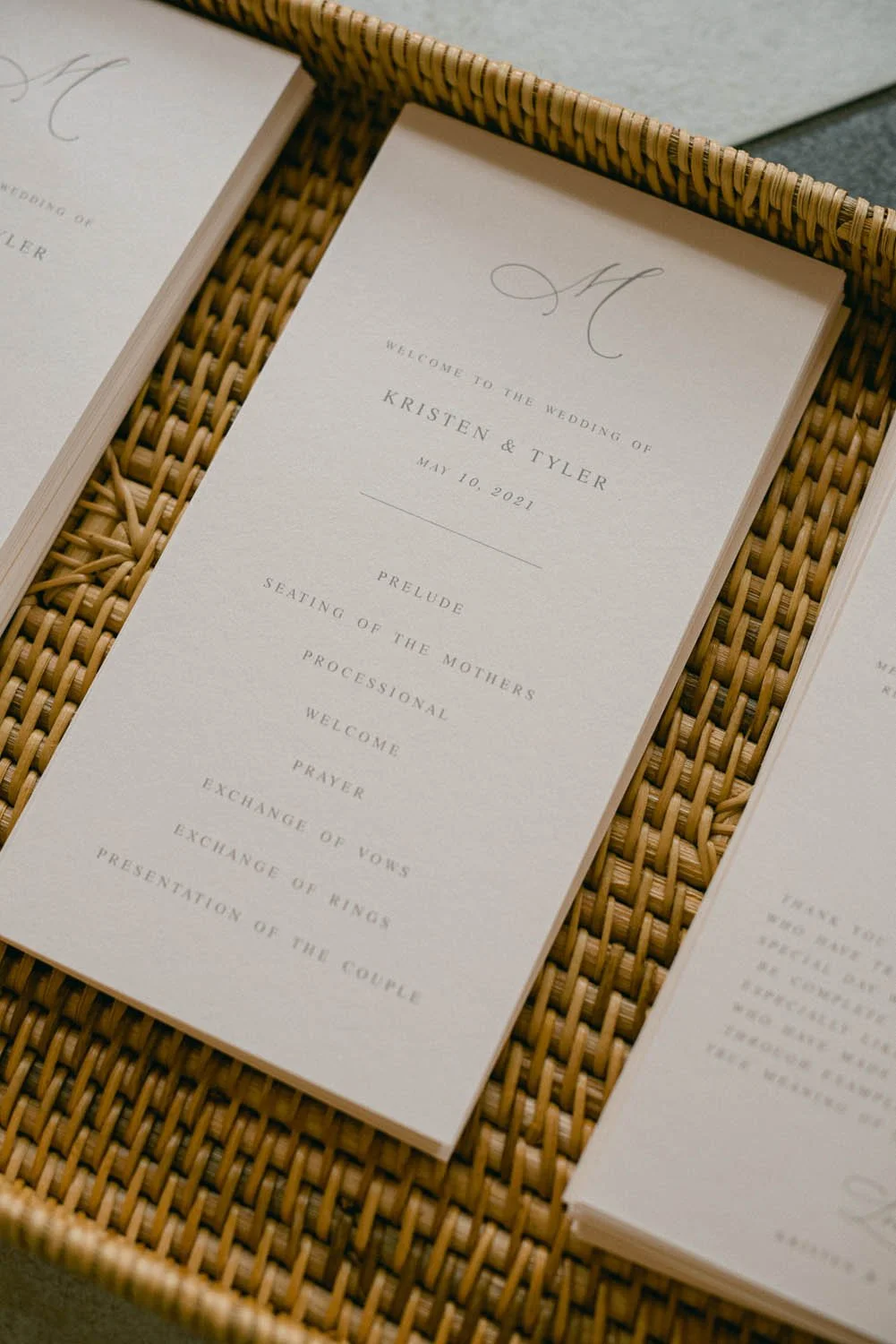 Starting with the Save the Dates, the delicate handmade paper set the tone for this intimate and romantic destination wedding, set on the water in Charleston, South Carolina. A blind deboss butterfly placed throughout the stationery in memory of the bride’s maternal grandmother was sentimental detail that tells the story of the great love in this family. The watercolor envelope liners painted by a local Charleston artist, show the gorgeous views of the venue. And the vintage postage was curated showing homage to South Carolina and again, the butterfly. All captured beautifully by Virgil Bunao.